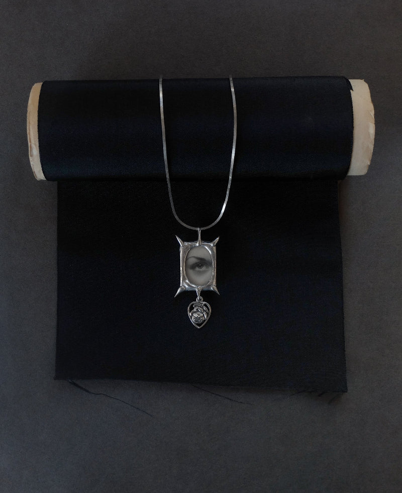 Materials: Vintage black & white photography framed with lead-free silver alloy and vintage silver charm.