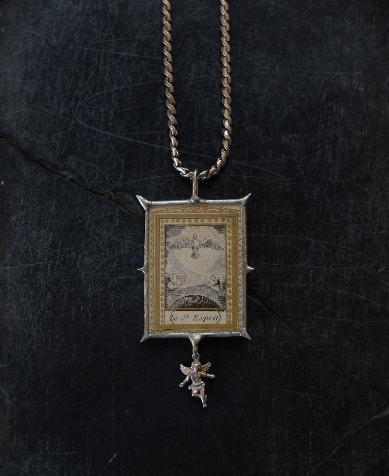 Materials: Card from a vintage Spanish deck framed with lead-free silver alloy.