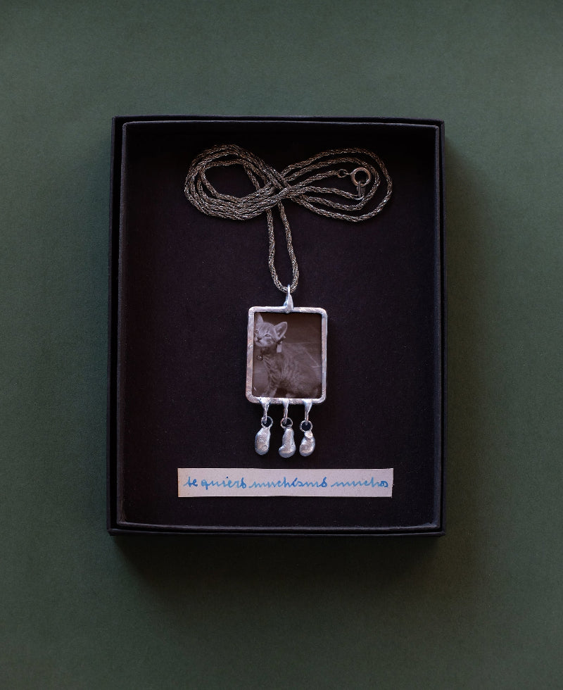 Materials: Vintage black & white photography framed with lead-free silver alloy and vintage silver charm.