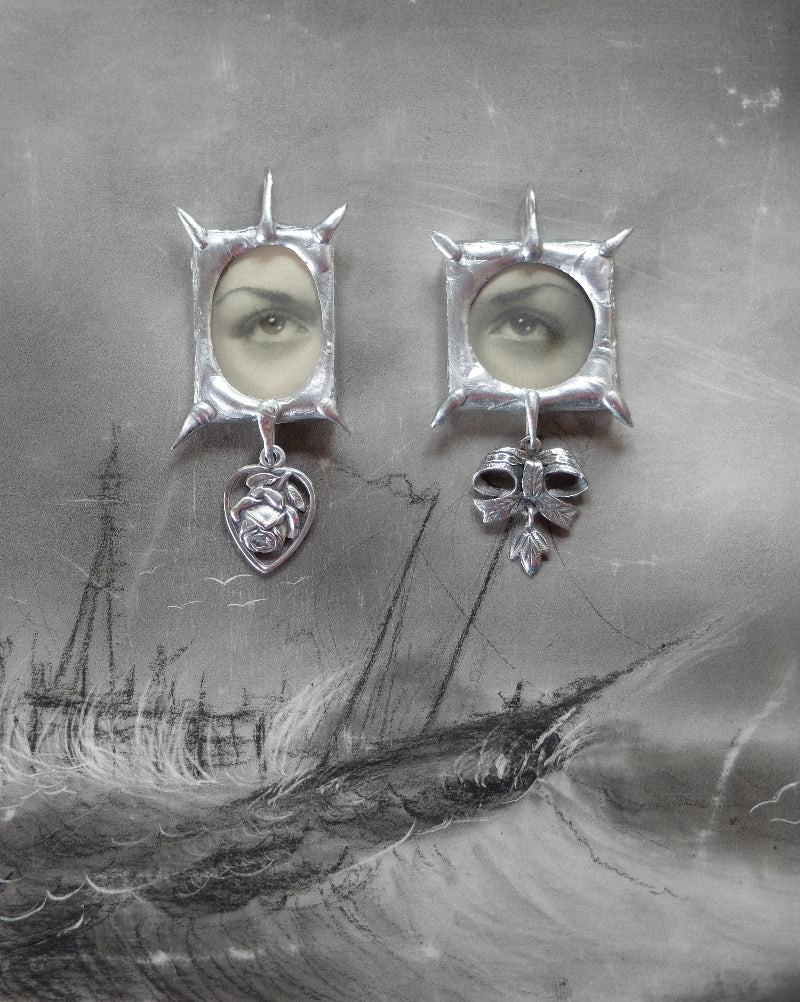 Materials: Vintage black & white photography framed with lead-free silver alloy and vintage silver charm.