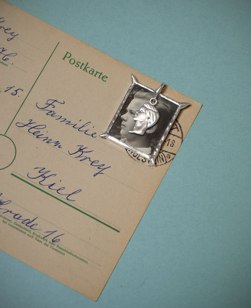 Materials: Vintage black & white photography framed with lead-free silver alloy and vintage silver charm.