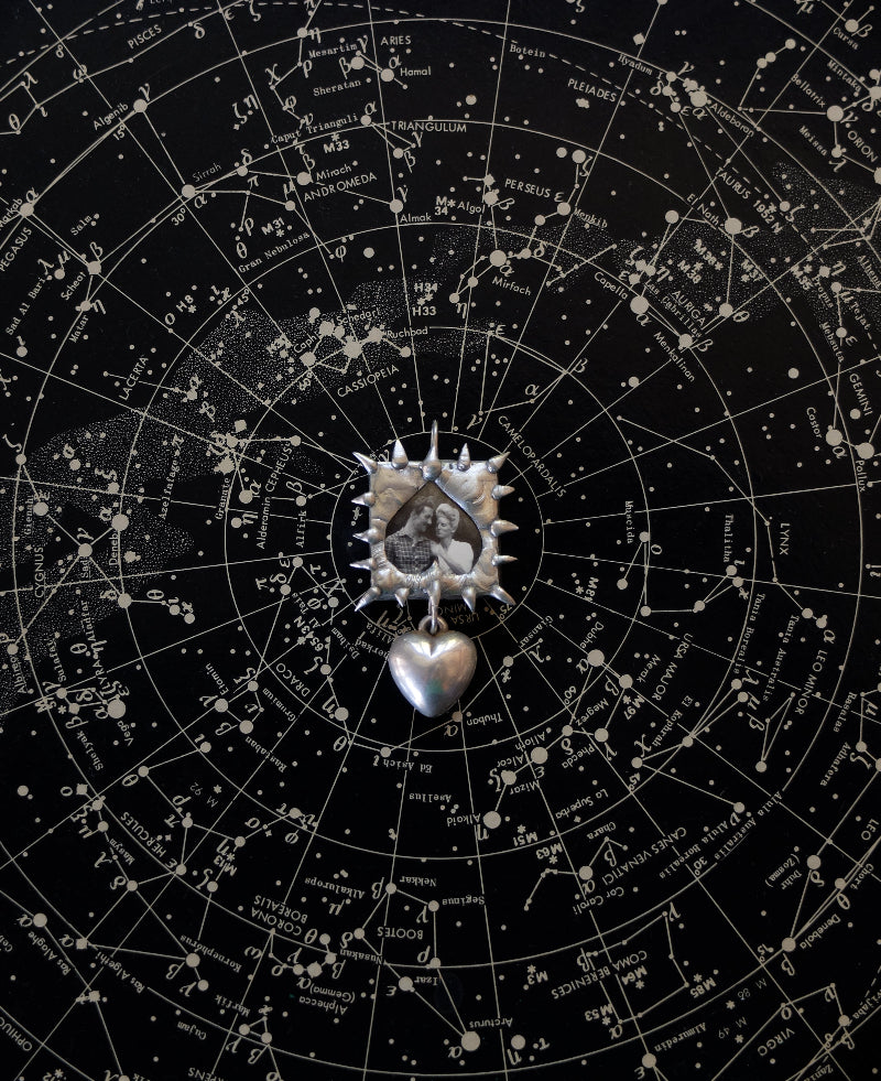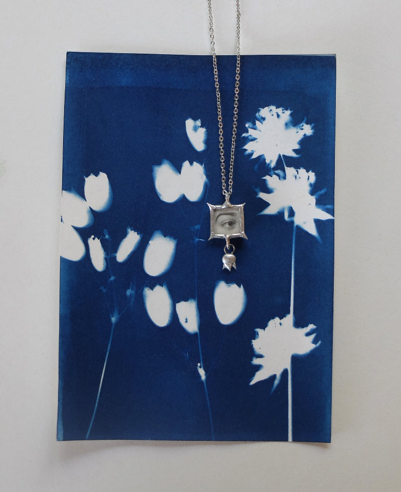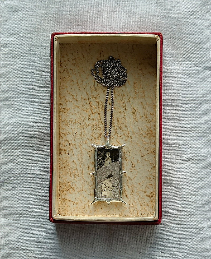 Unique jewellery handmade by Carina Hemmings framing vintage photography and incorporatingfound objects. One of a kind.