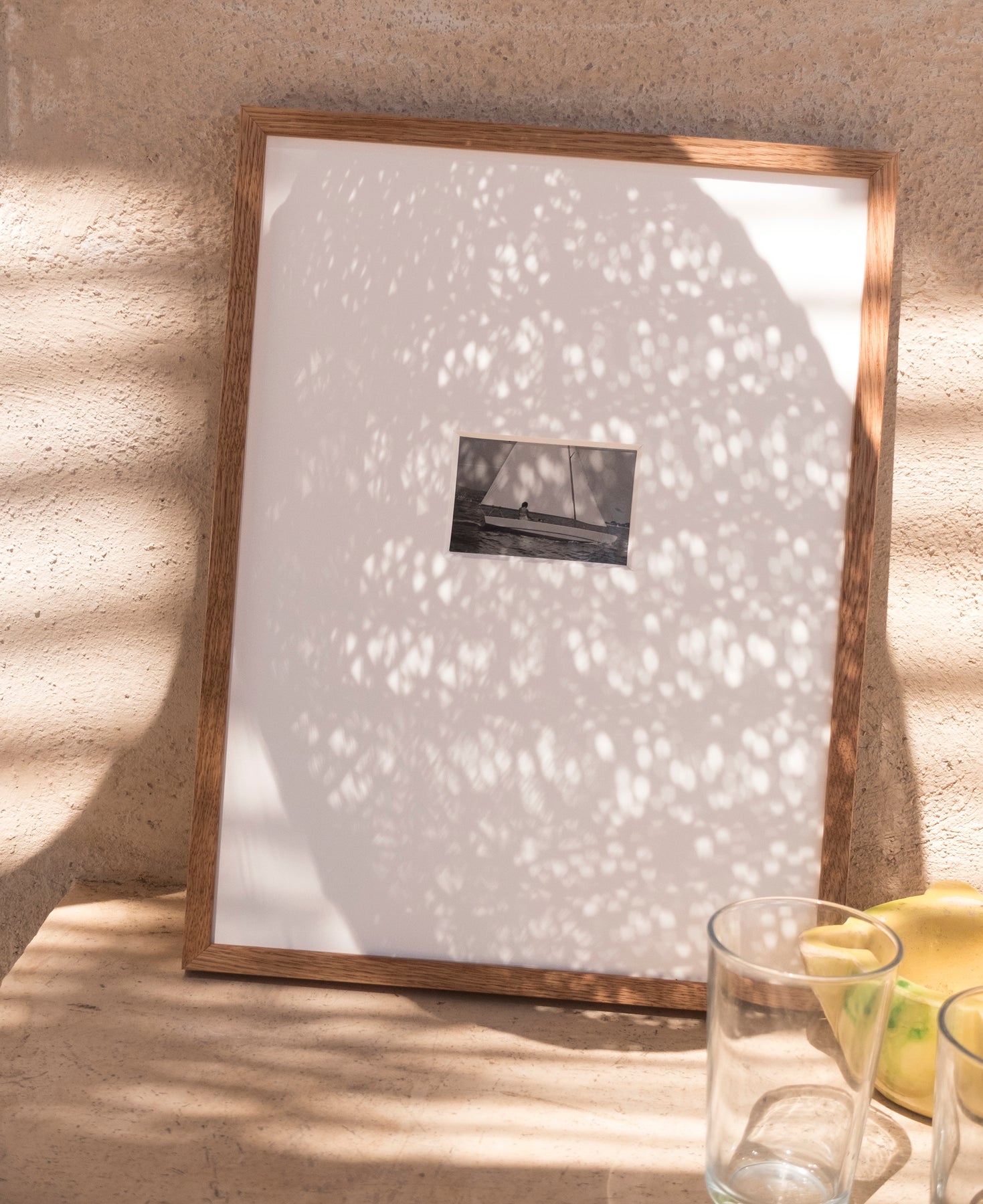 Frame size: 30x40 cm Solid oak wood. Picture size: 9x6 cm with 3mm Museum quality white Passepartout.